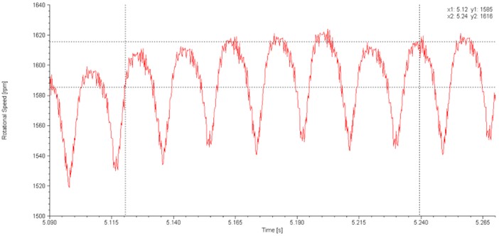 捩り振動の計測には回転速度変動の正確な計測が要求され、度々、シャフト回転毎に複数回サンプリングするセンサーが使用されます。光エンコーダー、光センサー、磁気ピックアップのような回転毎のパルス(PPR)センサーが一般的にこのような計測で使用されます。これらのセンサーは大変高い周波数で回転速度に応じた信号を生成し、技術者に各々のサイクルにおいて回転速度の細かな変動を検知させます。