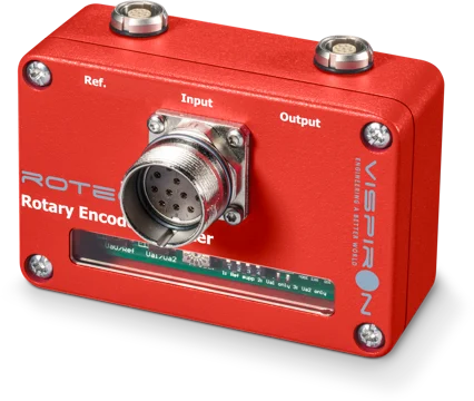 位相シフターは、ROTCロータリーエンコーダーアダプターと組み合わせて使用されます。P位相シフターは、エンコーダーの基準信号を調整可能な速度パルス数(=増分)だけ遅延させます。元の参照マークは省略され、合成的に生成されたマークに置き換えられます。この合成基準パルスを測定の開始トリガとして使用できます。